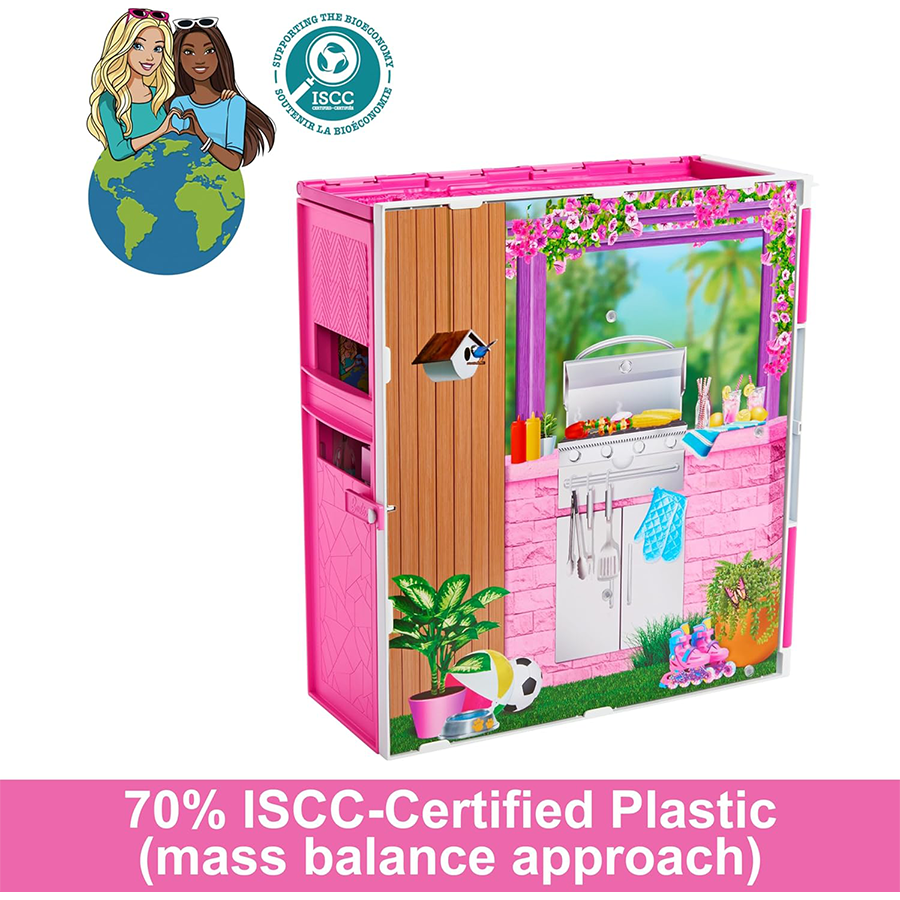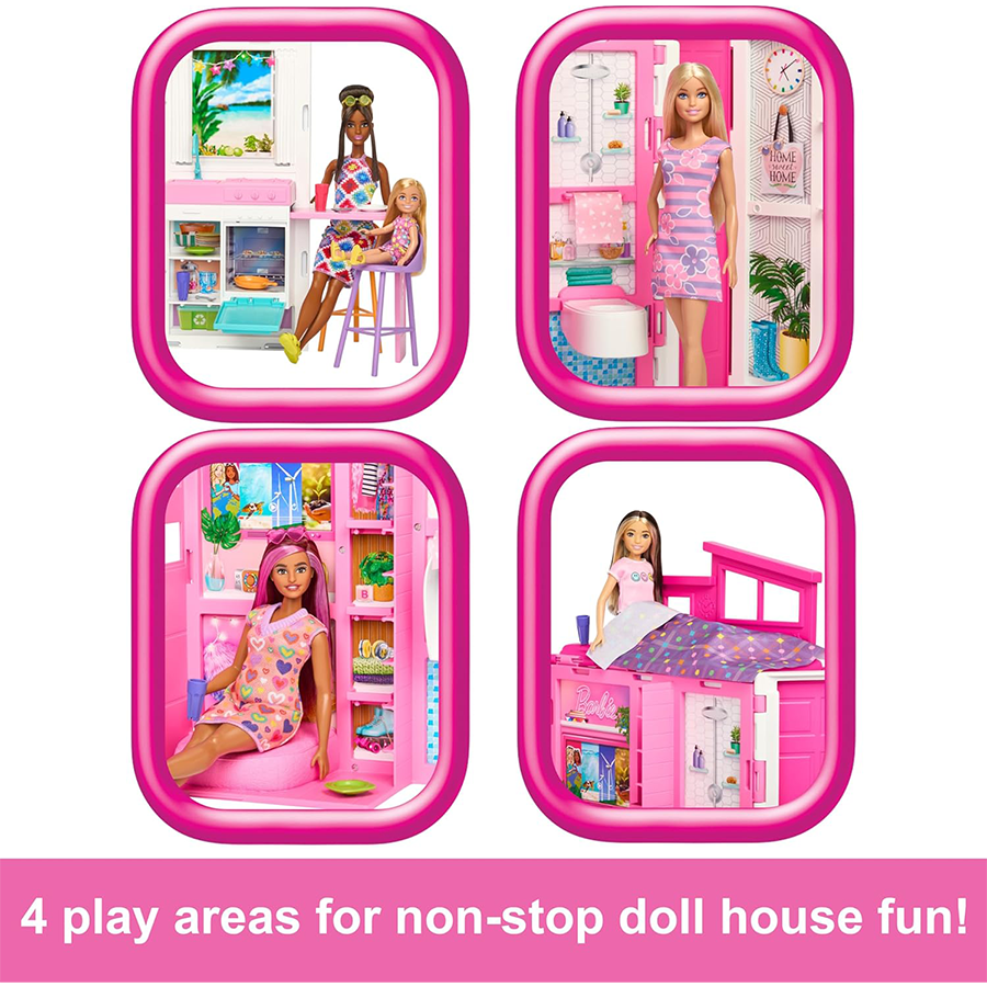 • مع منزل باربي للنزهة، سيستمتع الأطفال بقصصٍ شيقة! يأتي المنزل مع أربع مناطق لعب و١١ ملحقًا لساعاتٍ لا تنتهي من المرح.