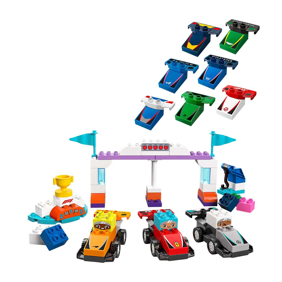 - سيارات لعبة LEGO F1 – يمكن بناء هذا النموذج القابل للبناء للأطفال الصغار بمساعدة الوالدين ويتضمن 10 سيارات سباق قابلة للبناء و3 مكعبات سائق ولعبة رافعة وأضواء بداية ومنصة.