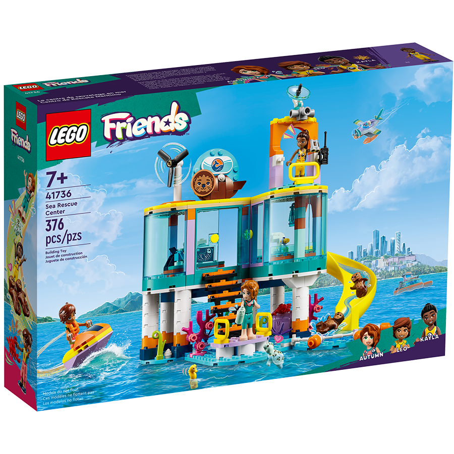 - 3 دمى صغيرة وملحقات – تأتي مجموعة LEGO Friends Sea Rescue Center مع شخصيات Autumn وLeo وKayla، بالإضافة إلى شخصيتين من ثعالب البحر، وحصان بحر وملحق سلحفاة بحرية