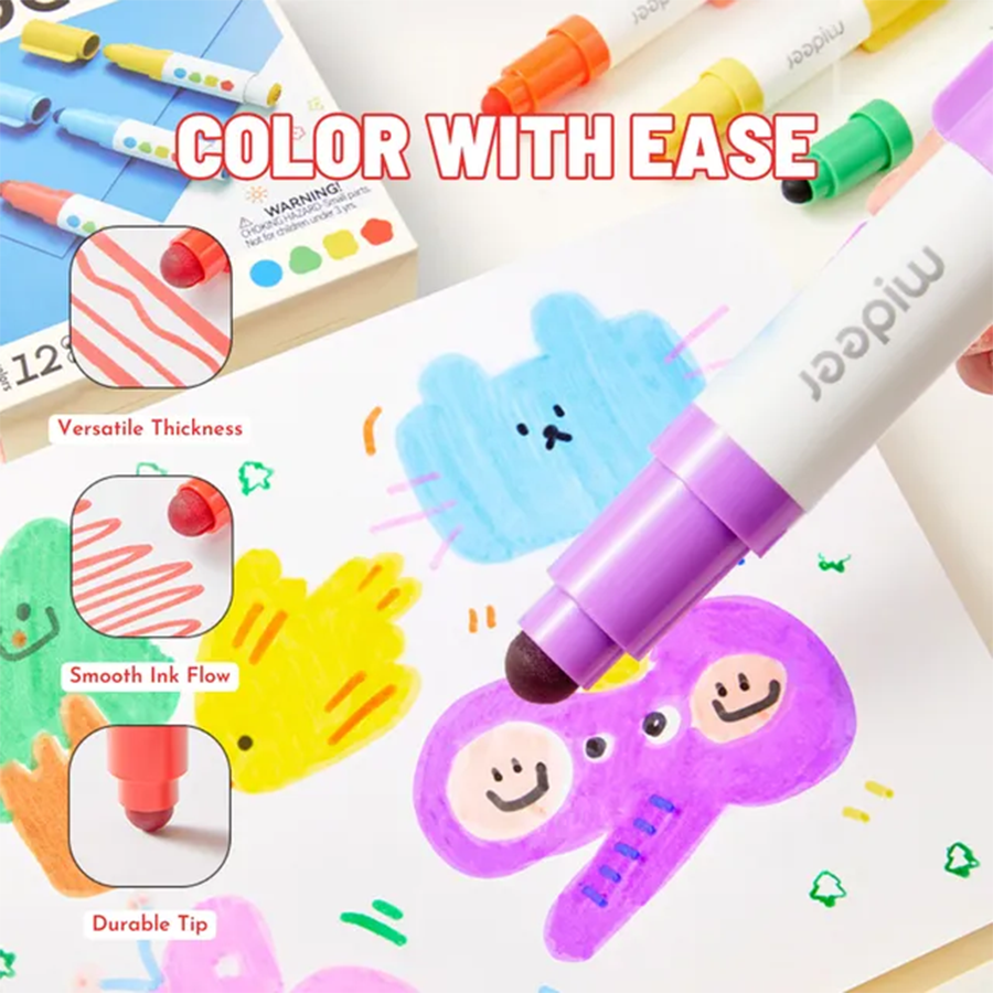 Mideer Dual Tip Washable Markers – 12 Pcs MD3386 ميدير أقلام تحديد قابلة للغسل برأسين – 12 قطعة