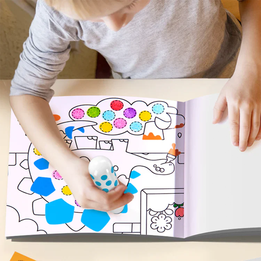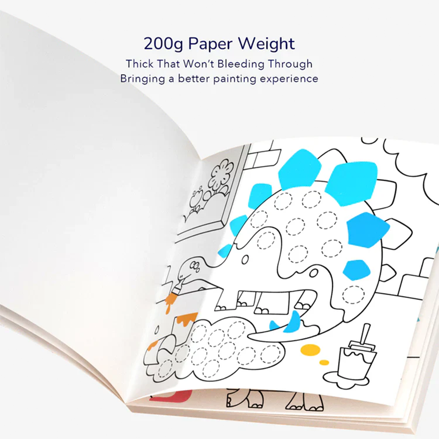 - دفاتر تلوين “ماجيك دوت دوت” مصممة خصيصًا لأقلام “ماجيك دوت ماركر”. ورقها اللاصق المزدوج، وزنه 200 غرام، سميك ومقاوم للحبر، مما يوفر تجربة رسم أفضل.