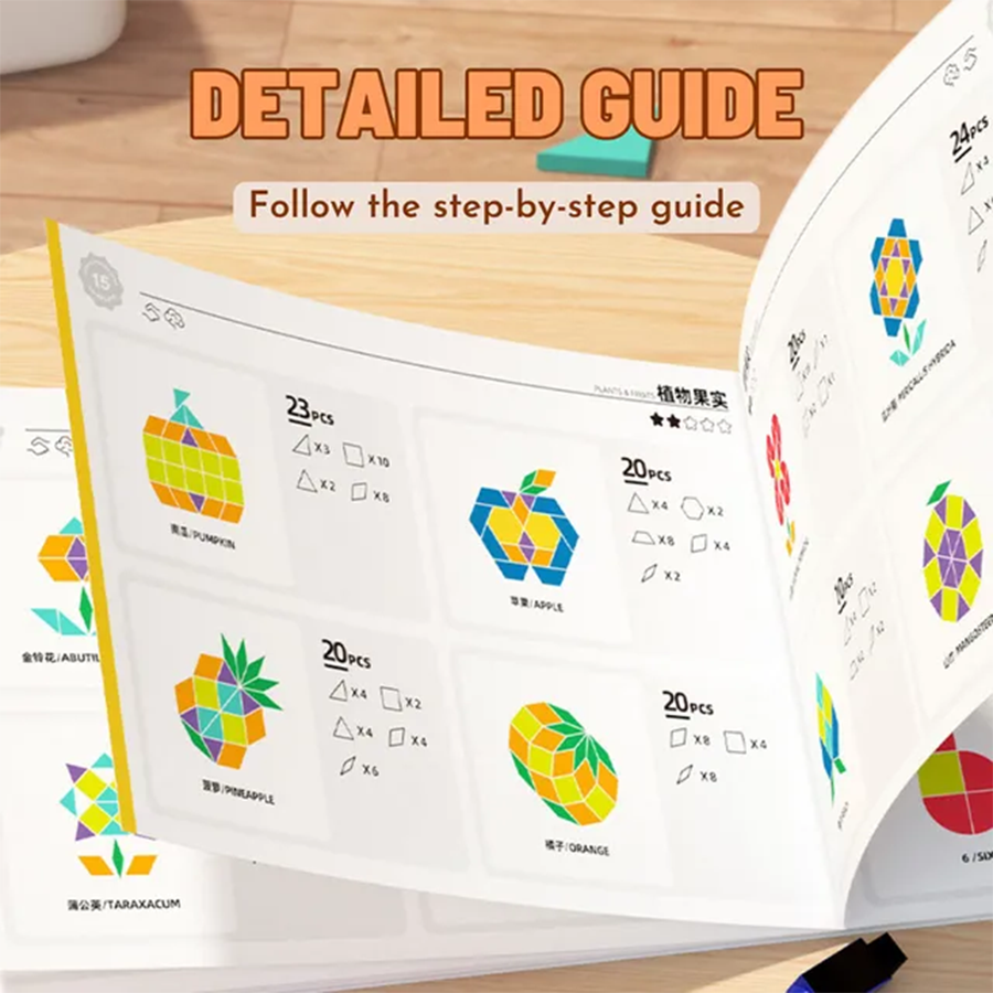- تتضمن المجموعة أيضًا دليل تعليمات يُساعد الأطفال على البدء ويُقدم لهم أفكارًا لبناء هياكل مُختلفة.