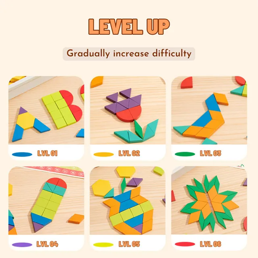- يأتي مع ٢٥٠ مكعبًا خشبيًا ملونًا بأشكال وأحجام مختلفة.