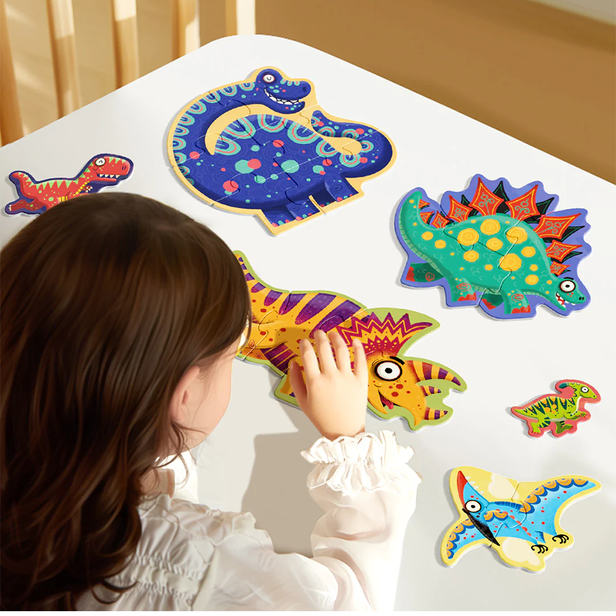 - التعقيد المتدرج: تتراوح أحجام الألغاز من قطعتين إلى ست قطع، مُصمَّمة خصيصًا لمساعدة الأطفال الصغار على اتخاذ خطواتهم الأولى في تجميع الألغاز.