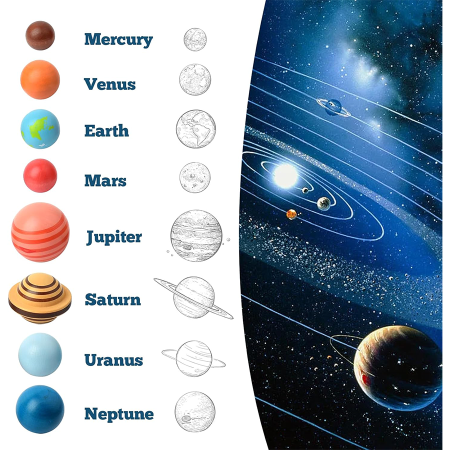 Wooden Solar System Model Board المجموعة الشمسية الخشبية